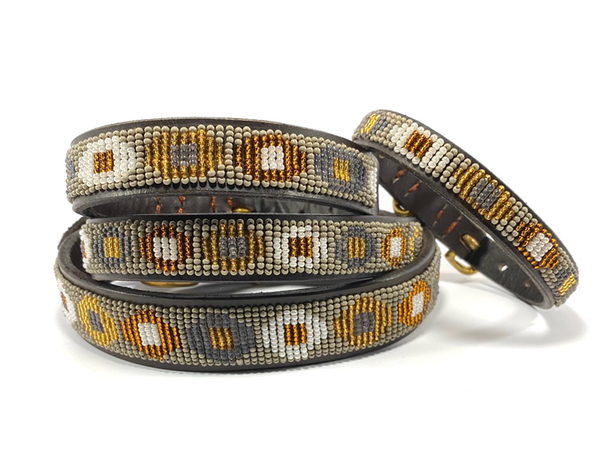 De halsbanden van Nata'Chien worden ontworpen door Natacha (Antwerpen) en met de handgemaakt door Masai vrouwen uit Kenia.
