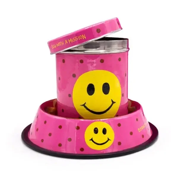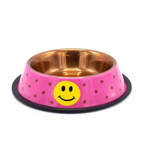 "Smiley" is niet zomaar een eet- en drinkbakje, maar een handgeschilderd kunstwerk dat flair aan je huis toevoegt. De kleur roze met een gele smiley en stippen staat prachtig in ieder interieur. Perfect voor wie exclusiviteit waardeert. Gemaakt met aandacht en liefde, behoudt "Smiley" zijn schoonheid het best met een zachte handwas.