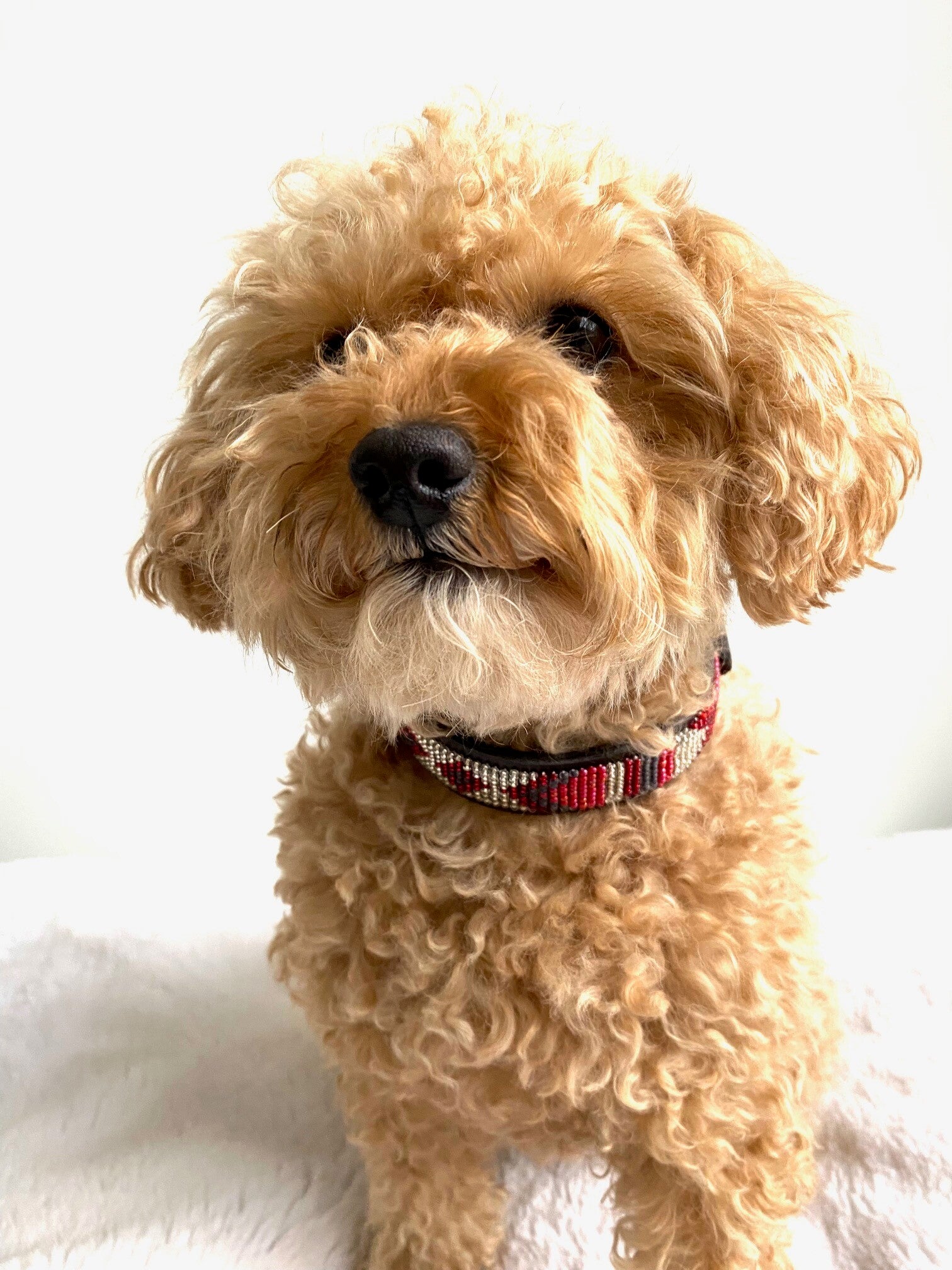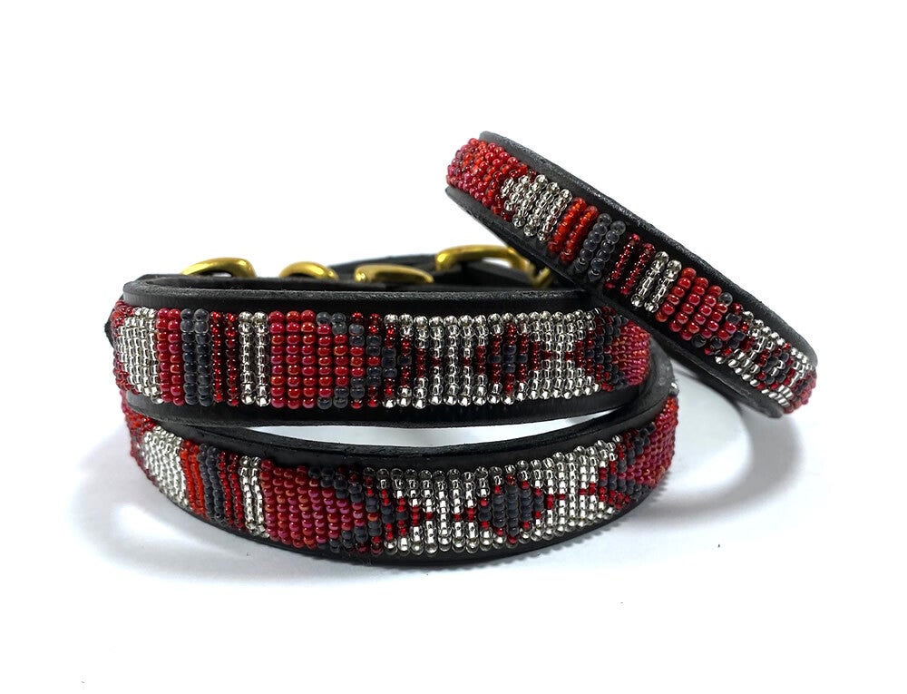 De halsbanden van Nata'Chien worden ontworpen door Natacha (Antwerpen) en met de handgemaakt door Masai vrouwen uit Kenia.