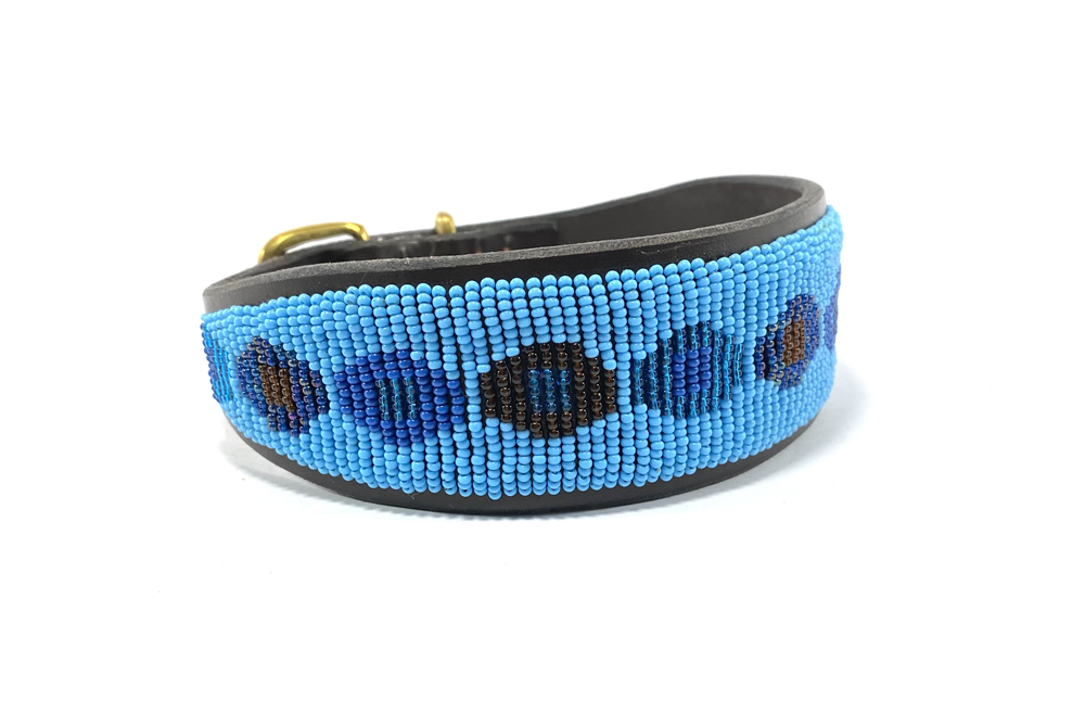 De halsbanden van Nata'Chien worden ontworpen door Natacha (Antwerpen) en met de handgemaakt door Masai vrouwen uit Kenia.