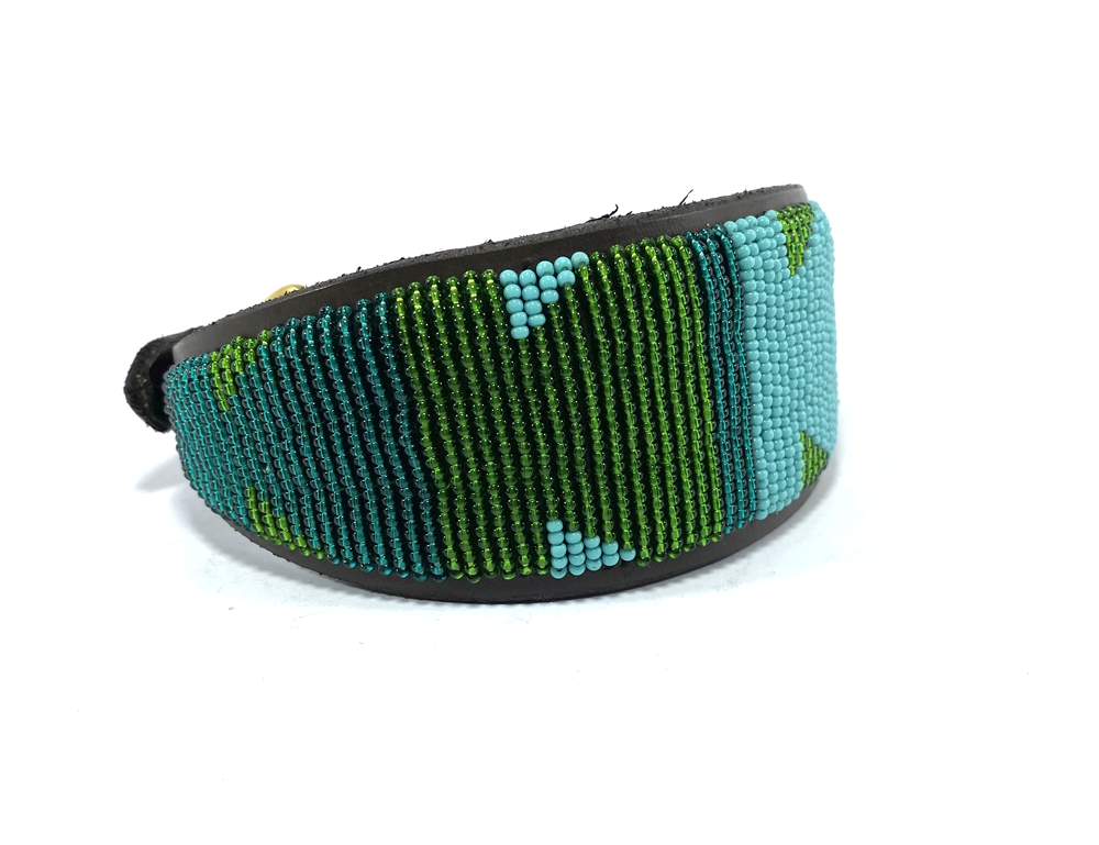 De halsbanden van Nata'Chien worden ontworpen door Natacha (Antwerpen) en met de handgemaakt door Masai vrouwen uit Kenia.