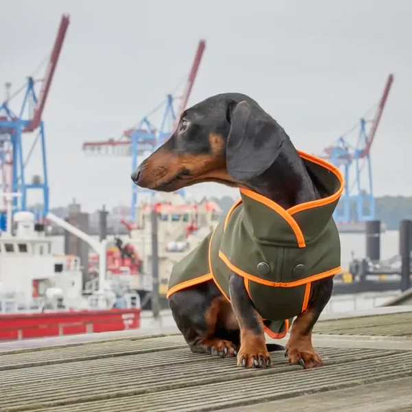 Gemaakt van hoogwaardig softshell-materiaal, zit hij altijd comfortabel dankzij de uitstekende pasvorm en de klittenbandsluiting op de rug. Met een opening voor het harnas op de rug is deze uitstekend afgewerkte hondenjas bovendien gericht op het comfort en de functionaliteit van uw teckel. Het hoogfunctionele softshell-materiaal is daarbij zowel winddicht als waterafstotend, evenals robuust en duurzaam – precies zoals het hoort voor een hoogwaardige softshell-jas.