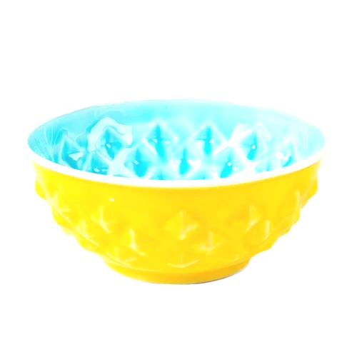 Dit kleurrijke voederbakje is een versiering in elke keuken. Door de mooie kleurencombinatie van blauw met geel past het bij iedere hond en maaltijd.
