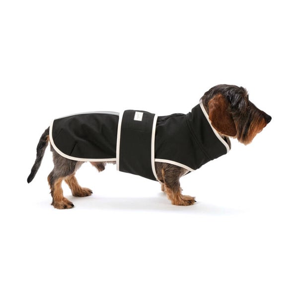 Gemaakt van hoogwaardig softshell-materiaal, zit hij altijd comfortabel dankzij de uitstekende pasvorm en de klittenbandsluiting op de rug. Met een opening voor het harnas op de rug is deze uitstekend afgewerkte hondenjas bovendien gericht op het comfort en de functionaliteit van uw teckel. Het hoogfunctionele softshell-materiaal is daarbij zowel winddicht als waterafstotend, evenals robuust en duurzaam – precies zoals het hoort voor een hoogwaardige softshell-jas.