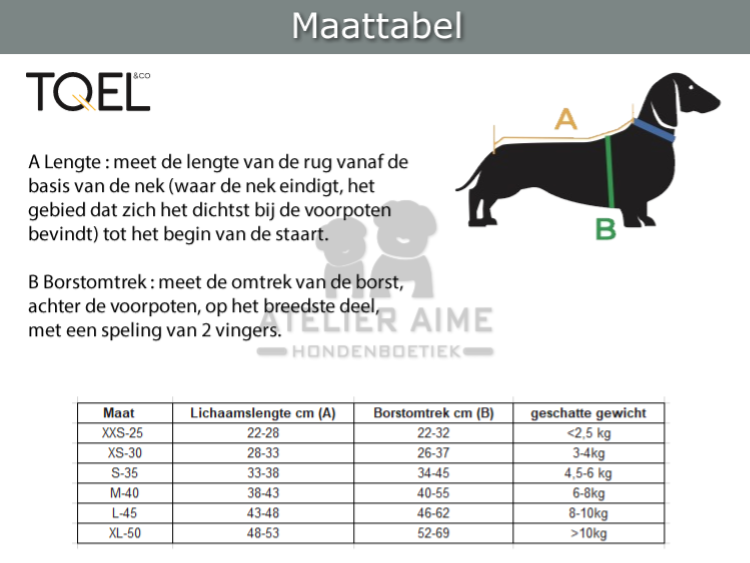Niet zeker van de maat? Kom even langs in de winkel zodat wij samen met uw hond het juiste jasje kunnen zoeken.