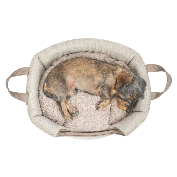 De lage instap maakt de hondenhol ideaal voor honden met korte poten zoals de teckel en zorgt voor een comfortabele instap. Twee zijhandvatten vergemakkelijken het dragen, zodat de hondenhol ook onderweg, op reis of gewoon binnen de woning probleemloos kan worden gebruikt.