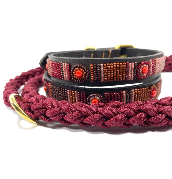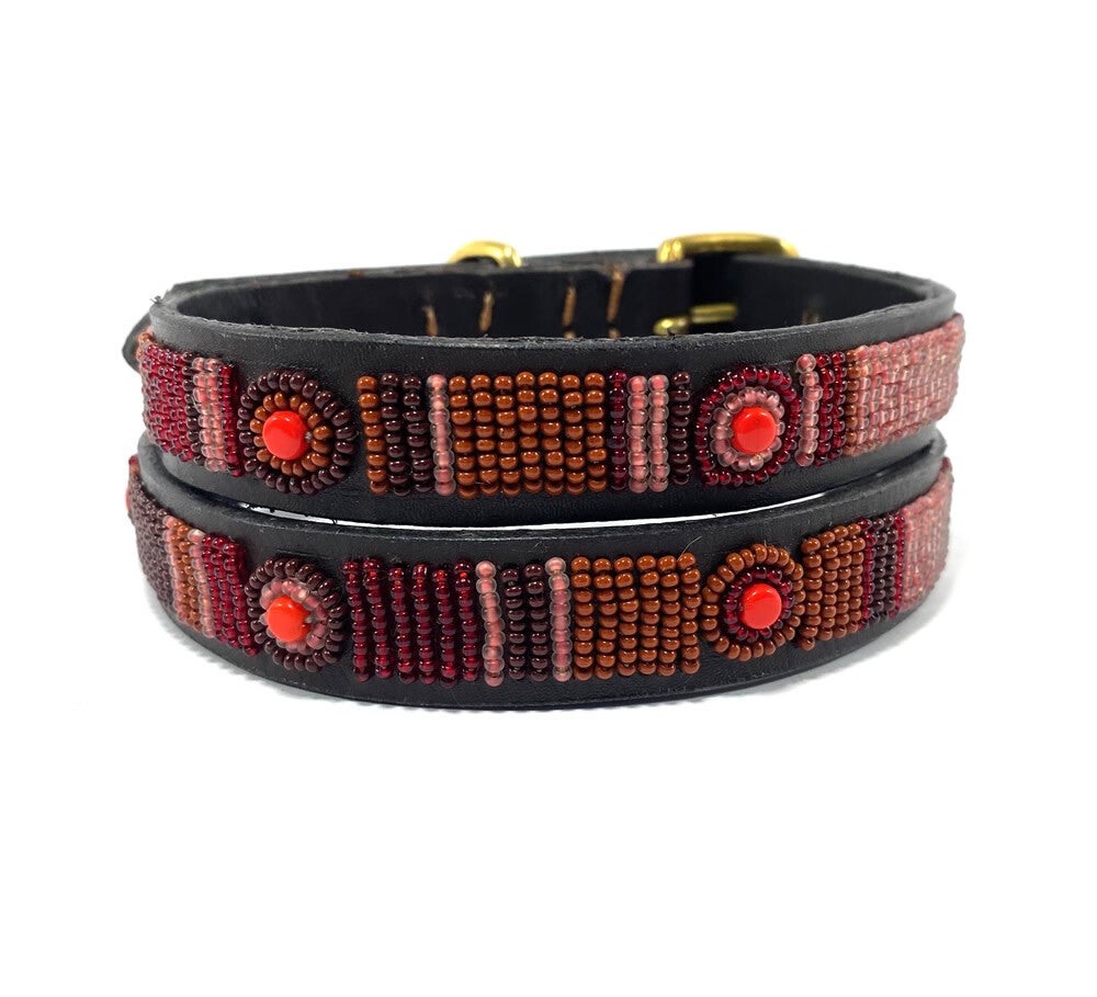 De halsbanden van Nata'Chien worden ontworpen door Natacha (Antwerpen) en met de handgemaakt door Masai vrouwen uit Kenia.