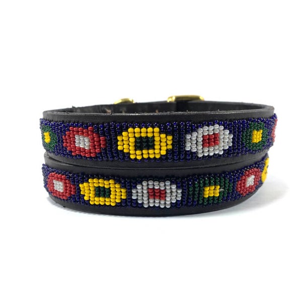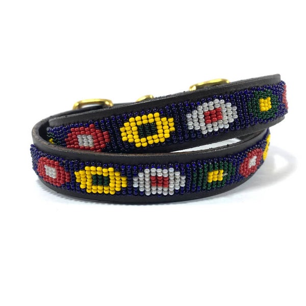 De halsbanden van Nata'Chien worden ontworpen door Natacha (Antwerpen) en met de handgemaakt door Masai vrouwen uit Kenia.
