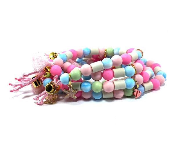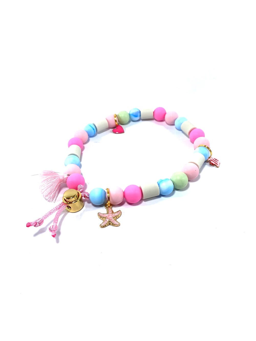 Met EM-kralen en siliconen parels