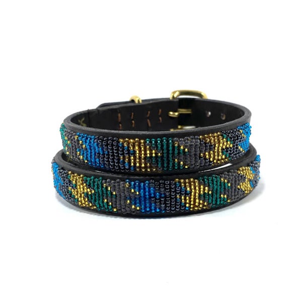 De halsbanden van Nata'Chien worden ontworpen door Natacha (Antwerpen) en met de handgemaakt door Masai vrouwen uit Kenia.