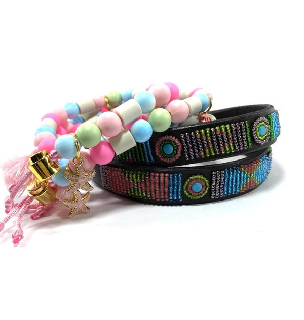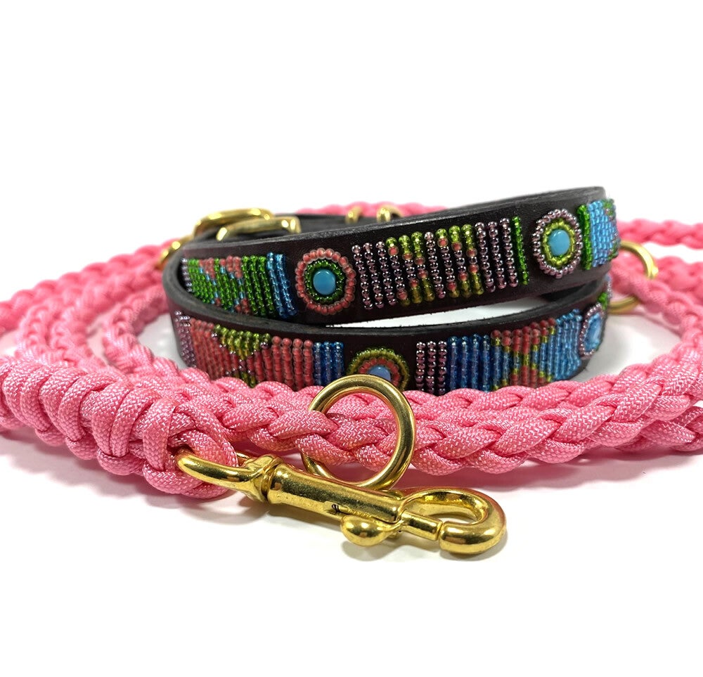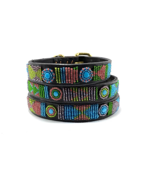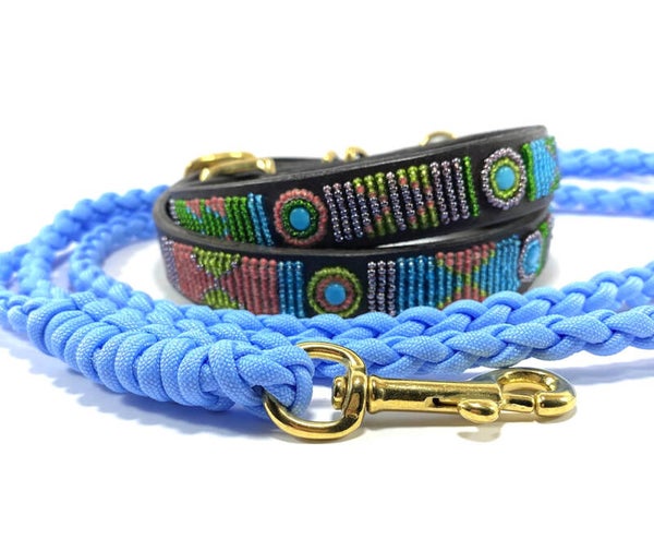 De halsbanden van Nata'Chien worden ontworpen door Natacha (Antwerpen) en met de handgemaakt door Masai vrouwen uit Kenia.