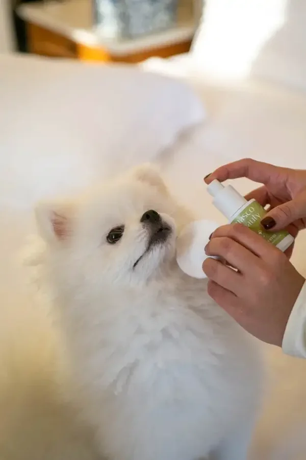 De Masco Beauty 30ml oogreiniger voor honden is een delicate en effectieve oplossing ontworpen om het traangebied te reinigen, donkere vlekken te verminderen en de oogcontour gezond te houden. De formule, ontwikkeld met natuurlijke en zachte ingrediënten, respecteert de gevoelige huid rond de ogen en kan vaak worden gebruikt, zelfs bij delicate rassen of met een lichte vacht.